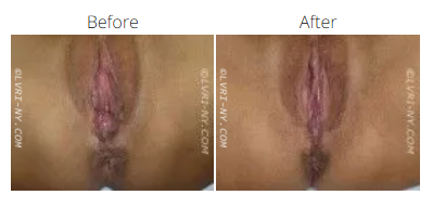 36 year old Caucasian Female from New Jersery, complained of loose vagina wants it tighter and have her Urinary Stress Incontinence (USI) fixed without vaginal mesh with LVR®2A as part of Combo LVR®2A-DLV®-IH -USI, look at her left mole at 2 o’clock, moved to 6 o’clock in the post-op picture.