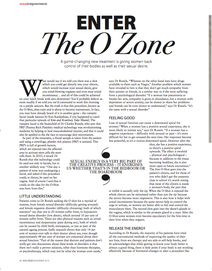 To read more about the latest media features of the O-Shot Procedure Click Here.
